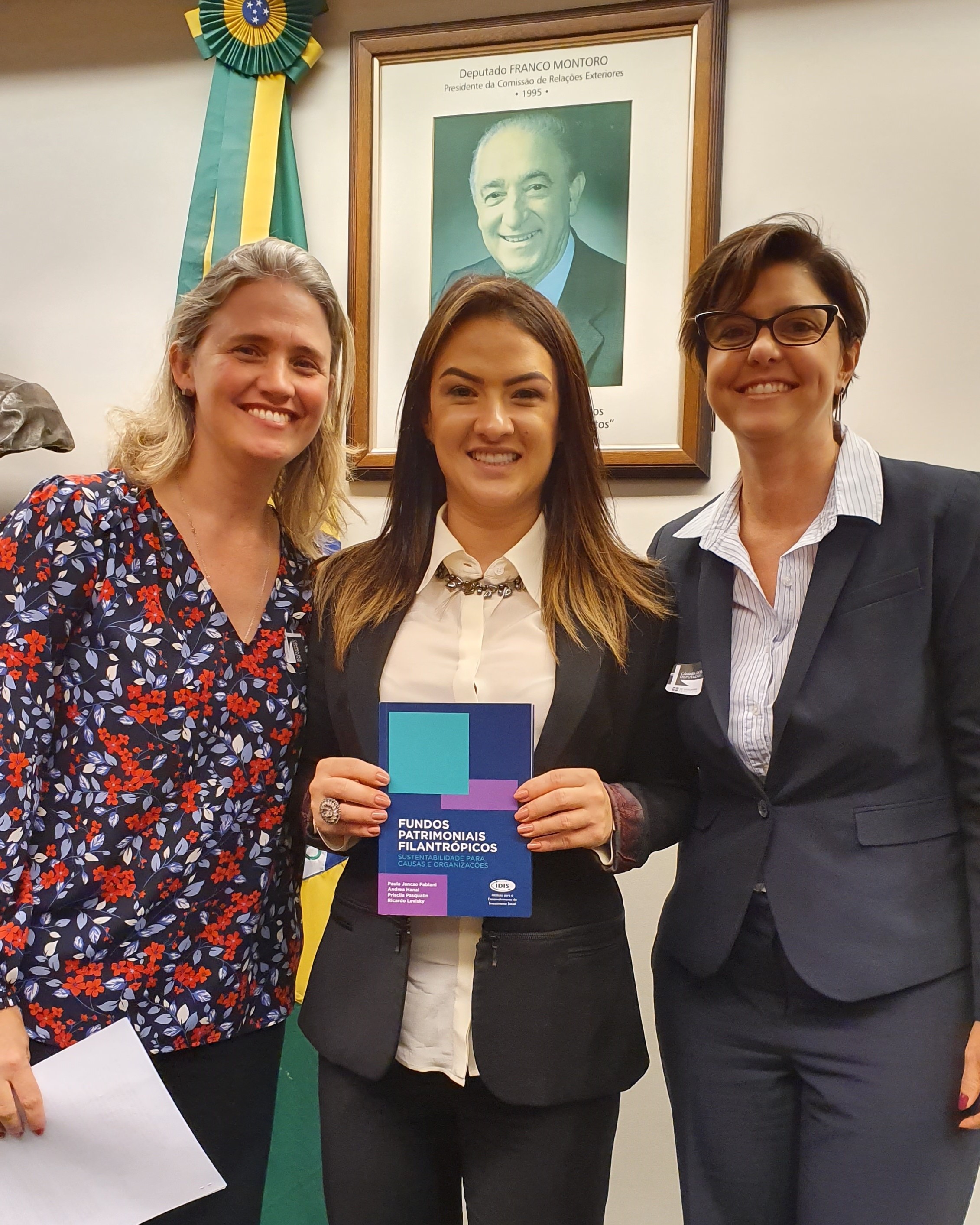 Na mesma semana, Paula Fabiani e Priscila Pasqualin estiveram em Brasília com a Deputada Federal Bruna Furlan e com o Senador Rodrigo Cunha. Entregaram a eles o recém-lançado livro sobre Fundos Patrimoniais Filantrópicos e discutiram a importância de incentivos fiscais à doação para fundos de todas as causas. Esta iniciativa integra a agenda de advocacy da Coalizão pelo Fundos Filantrópicos, liderada pelo IDIS.