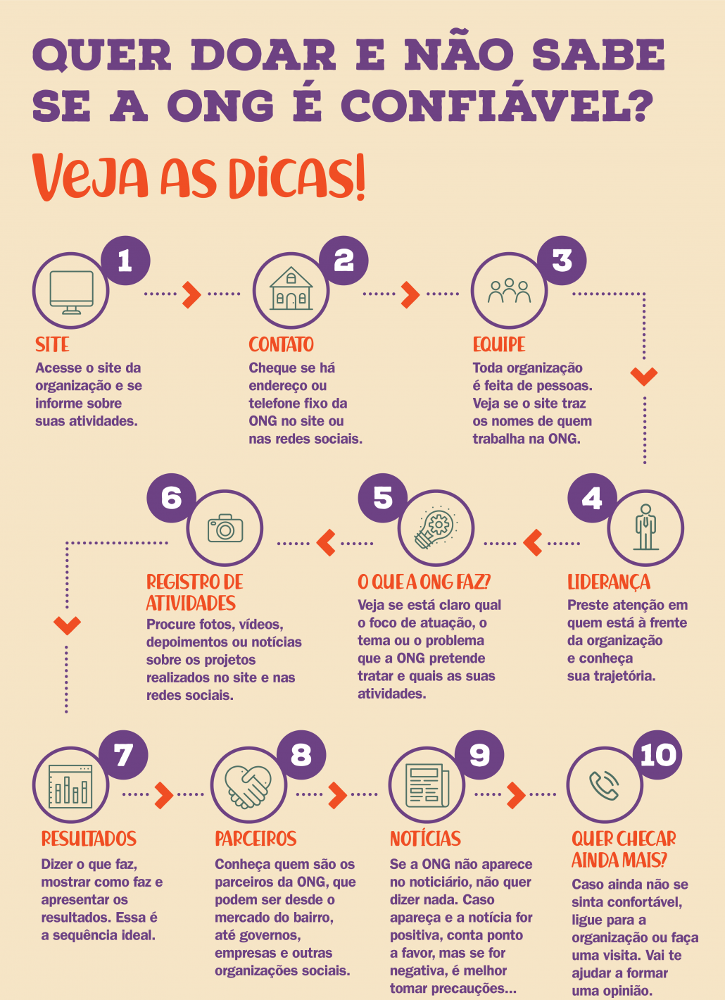 Descobrir se uma organização social vai fazer um bom uso da sua doação é, quase sempre, muito difícil, mas existem algumas averiguações básicas que você pode fazer. Veja nesse infográfico algumas dicas que podem ajudar você a se sentir mais seguro!