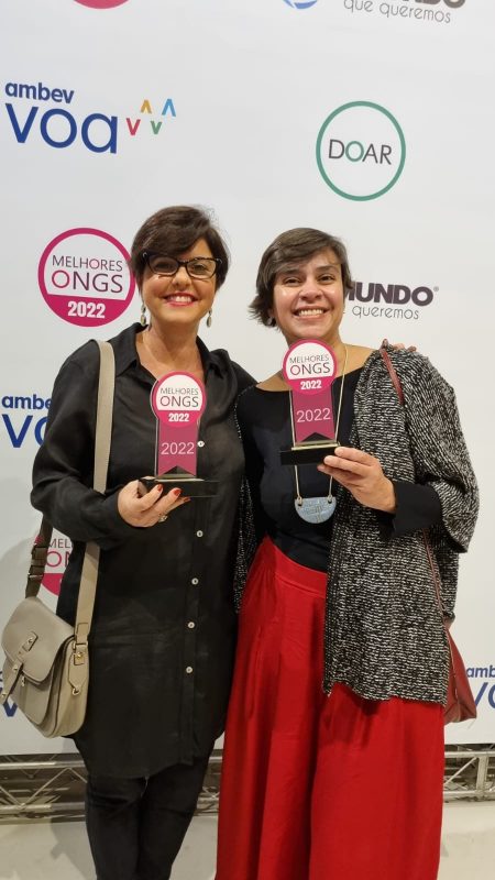 Paula Fabiani, CEO do IDIS, e Luisa Lima, gerente de comunicação na premiação do Melhores ONGs 2022, realizada em 25 de novembro na cidade de São Paulo