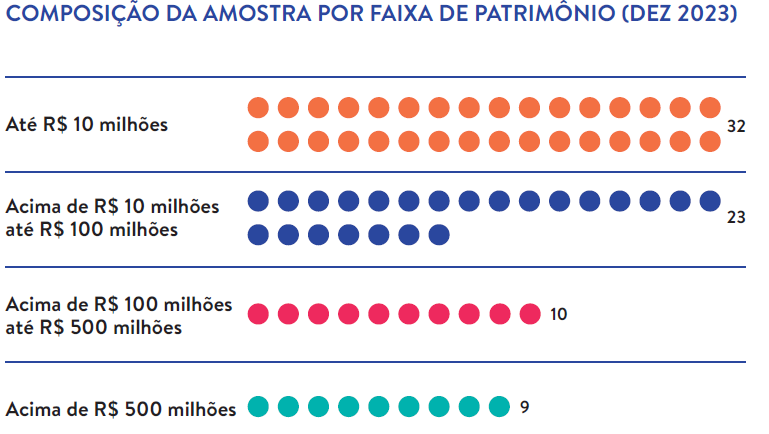 Composição da amostra por faixa de patrimônio dos fundos patrimoniais analisados no Anuário de Desempenho de Fundos Patrimoniais de 2023 (Dez 2023).