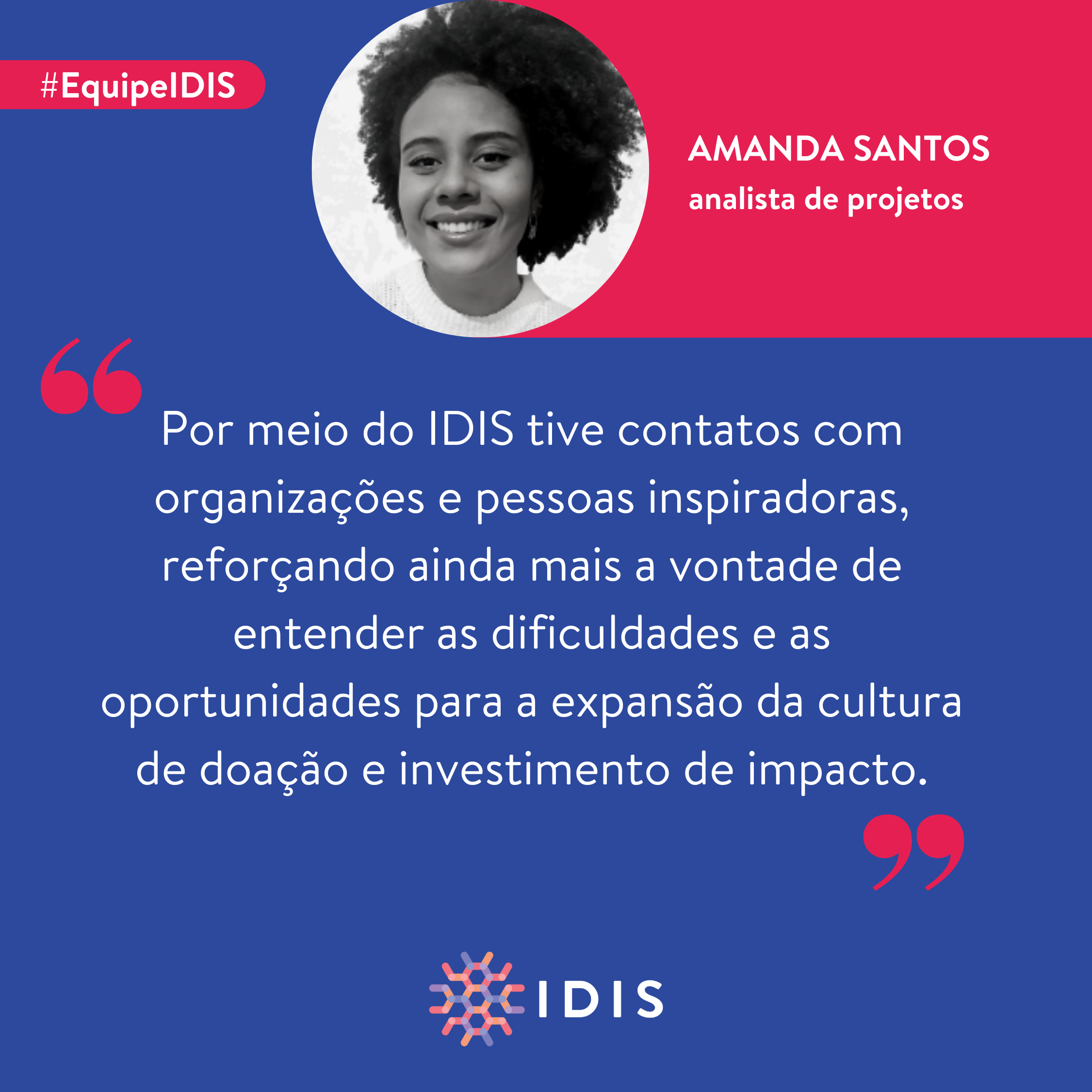 Toda organização é feita de pessoas. Não há resultados ou realizações sem elas e por isso celebrar quem faz parte e faz tudo acontecer é tão importante! Hoje, a equipe do IDIS é formada por 23 profissionais, atuando em diferentes frentes, mas com a mesma missão: inspirar, apoiar e ampliar o investimento social privado e seu impacto.