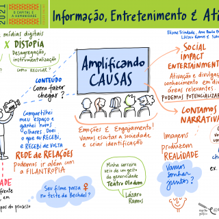 Em caráter exclusivo para inscritos, Amanda Santos, analista de projetos, junto de Daniel Barretti e Felipe Groba, ambos gerentes de projetos, ministraram uma masterclass sobre a avaliação de impacto e a metodologia SROI (Social Returno on Investment, ou em português, Retorno Social do Investimento). Os presentes puderam conhecer mais a fundo as especificidades dessa metodologia e cases. Entre os principais interesses da audiência, estava como o resultado de avaliação de impacto pode ajudar na comunicação com financiadores.