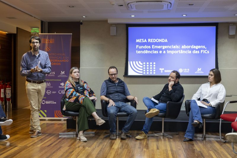 Ao final do último dia, parceiros e convidados se juntaram ao grupo para participar da mesa redonda‘Fundos Emergenciais – abordagens, tendências e a importância das FICs’. O painel trouxe discussões sobre o conceito, perspectivas, práticas e o papel único das FICs no contexto das situações emergenciais, contando com a mediação de Felipe Groba, gerente de projetos do IDIS e com os painelistas Eduardo Cetlin, diretor da Associação Nossa Cidade de Belo Horizonte; João Morais, Coordenador de Investimento Social e do BISC – Benchmarking do Investimento Social Corporativo na Comunitas; Julia Wildner, coordenadora de programas do ICOM de Florianópolis e Karine Ruy, coordenadora geral da Fundação Gerações do Rio Grande do Sul.