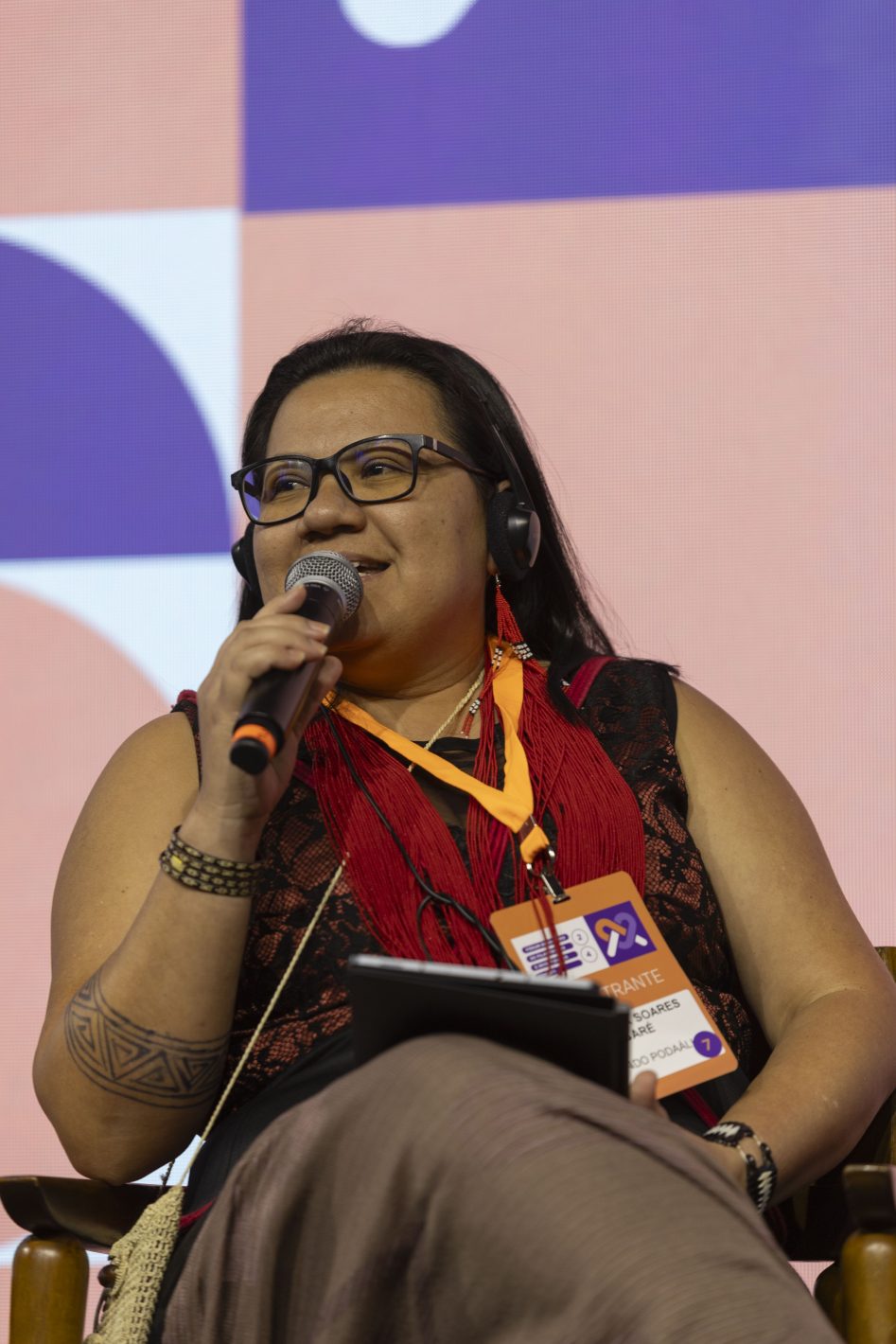 “Nós não estamos tendo o nosso bem viver. E o bem viver não é viver bem somente, o bem viver é fazer com que todos nós, independente de ser povos indígenas, extrativistas, quilombolas ou não indígenas, que todos nós possamos ter uma qualidade de vida para que a gente possa fazer com que todos tenhamos um ar que possamos respirar com qualidade. Mas todas essas responsabilidades são colocadas, são depositadas nos povos indígenas, aos povos indígenas, por conta das florestas, por conta da própria Amazônia, onde nós estamos inseridos. E eu gostaria muito de colocar para vocês que não é uma responsabilidade somente dos povos indígenas, é responsabilidade de todos nós: povos indígenas, os próprios representantes das empresas, das organizações que estão aqui, de todos os cidadãos e principalmente do governo, porque nosso governo brasileiro ele tem sim o dever de garantir nossos direitos que estão ali”, disse Claudia.