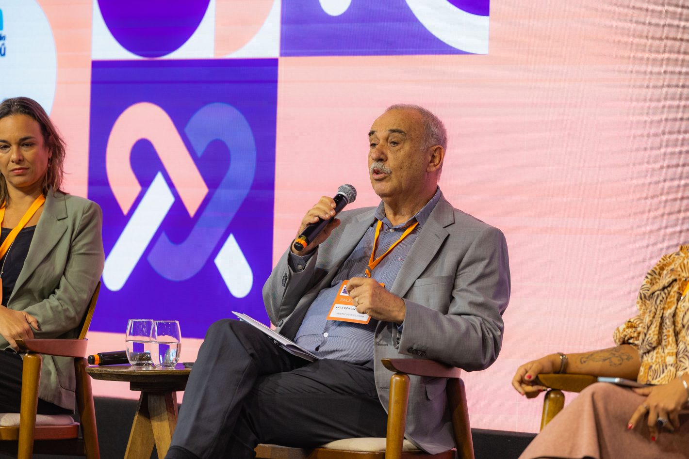 Gleice Santana Morais (Sicoob), Tião Rocha (CPCD) e Vitor Hugo Neia (Fundação Grupo Volkswagen) com moderação de Selma Moreira (IDIS)