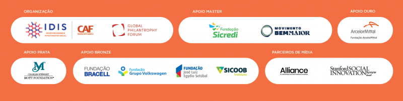 A realização é do IDIS – Instituto para o Desenvolvimento do Investimento Social, em parceria com o Global Philanthropy Forum e a Charities Aid Foundation, e apoio master do Movimento Bem Maior; apoio prata da RD Saúde; e apoio bronze da Fundação Grupo Volkswagen, Fundação Itaú, Fundação José Luiz Egydio Setúbal, Instituto Aegea Saneamento, Instituto Sicoob e Mott Foundation. A UNICEF Brasil é apoiadora institucional do evento e a Alliance magazine é nossa parceira de mídia.