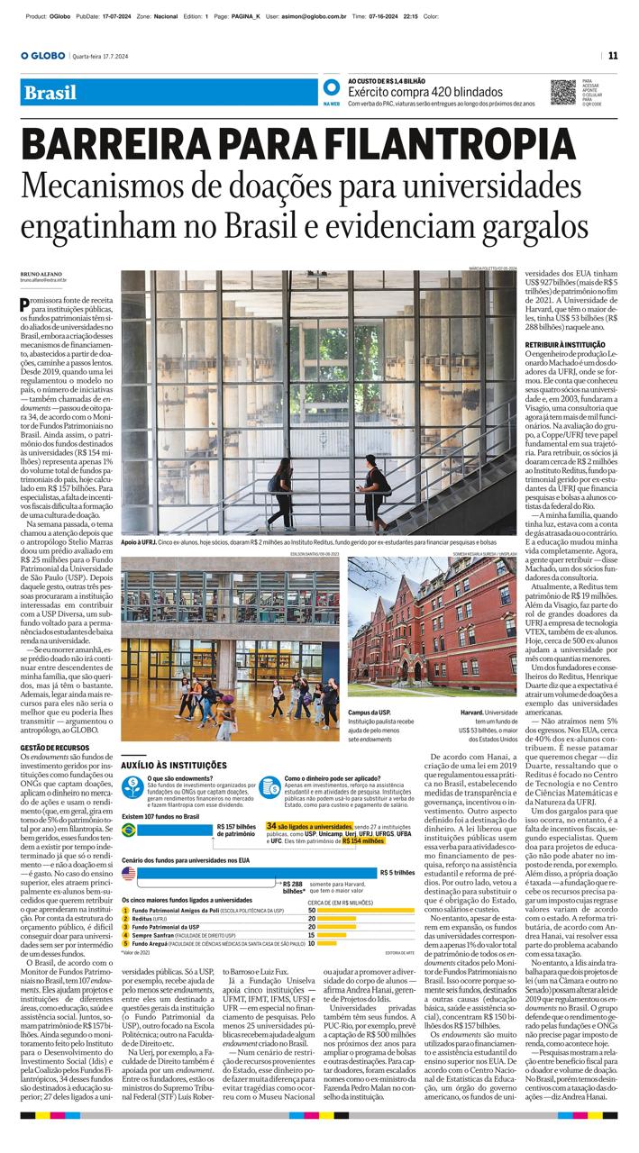 “Temos mais de 120 fundos patrimoniais filantrópicos no Brasil, que destinam anualmente mais de R$ 3 bilhões para causas de interesse público. Estas causas estavam sob risco de serem penalizadas por um erro de conceituação, levando a uma tributação descabida sobre esses fundos. A derrubada desses vetos é uma vitória muito importante para o terceiro setor e para o país”, diz Andrea Hanai, consultora do IDIS e integrante da Aliança Pelo Fortalecimento da Sociedade Civil.