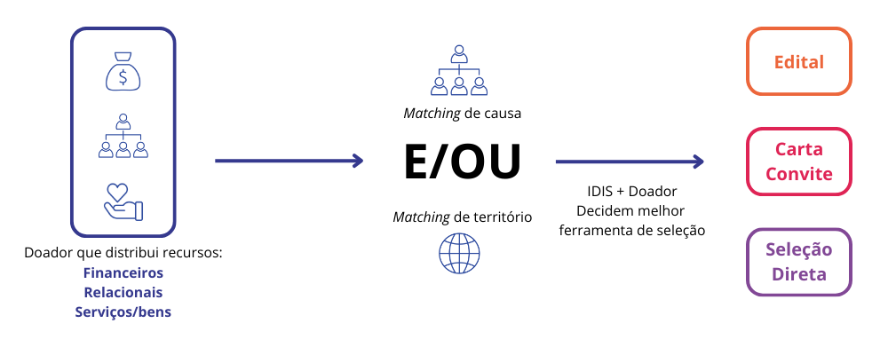 As organizações beneficiárias são selecionadas a partir de um criterioso processo de análise – que pode se dar por editais abertos, cartas convites ou outros meios. Também é comum, na prática, a relatoria de utilização do recurso, através de ferramentas de Monitoramento e prestações de contas. Dessa forma, o doador garante que o investimento está voltado para o impacto e sendo gerenciado por equipes que tem expertise na causa escolhida.