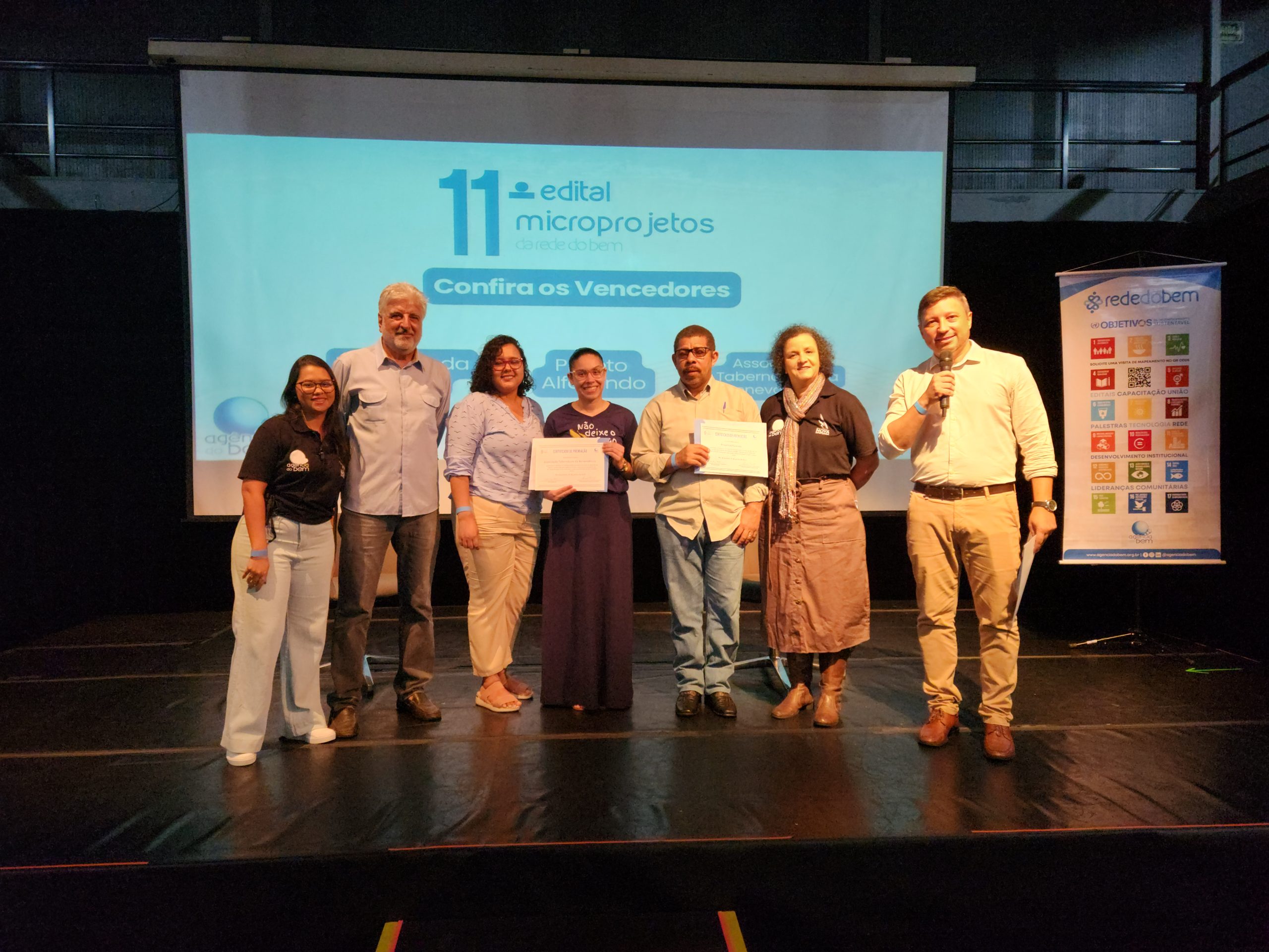 Equipe da Rede do Bem com as lideranças dos projetos vencedores do 11º Edital de Microprojetos, que oferece apoio financeiro para fortalecer organizações de base comunitária
