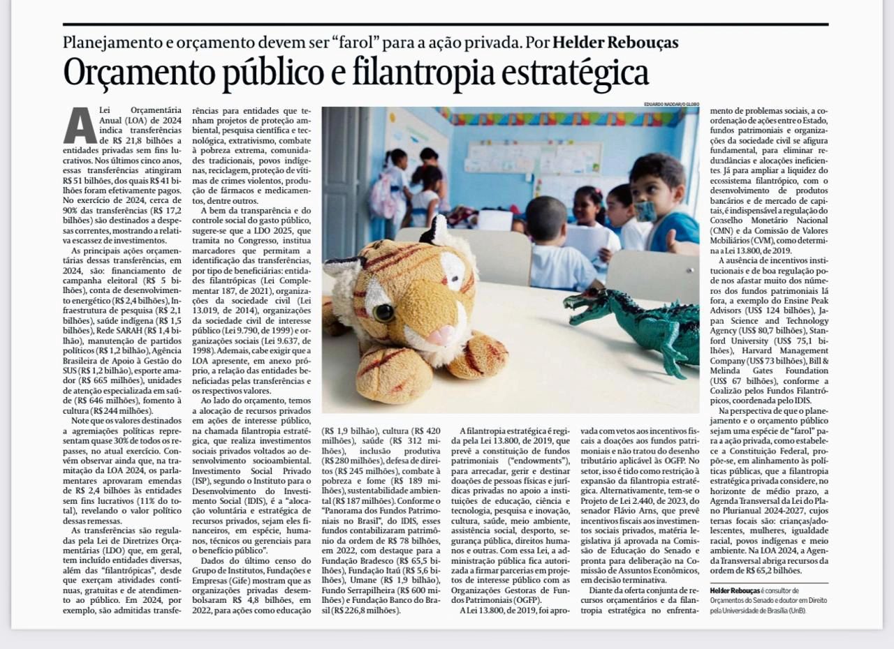 A Folha de São Paulo destacou toda a programação do Fórum e reforçou a importância do evento como um lugar de discussão dos desafios e perspectivas para filantropia global.