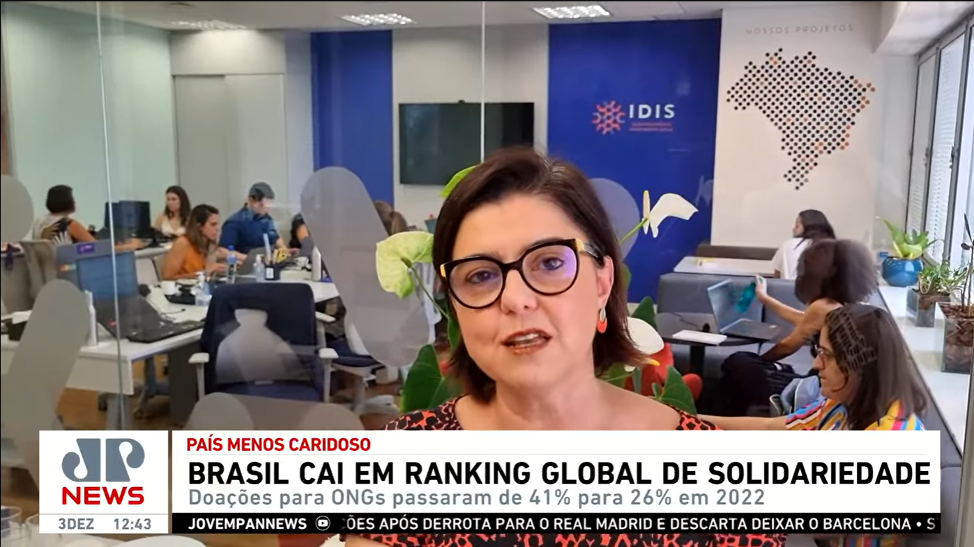 Paula Fabiani, CEO do IDIS, destacou que, apesar da queda no ranking em 2023, os percentuais estão em linhas com anos anteriores, exceto na pandemia em que os indicadores tiveram aumento graças a onda de solidariedade no país.