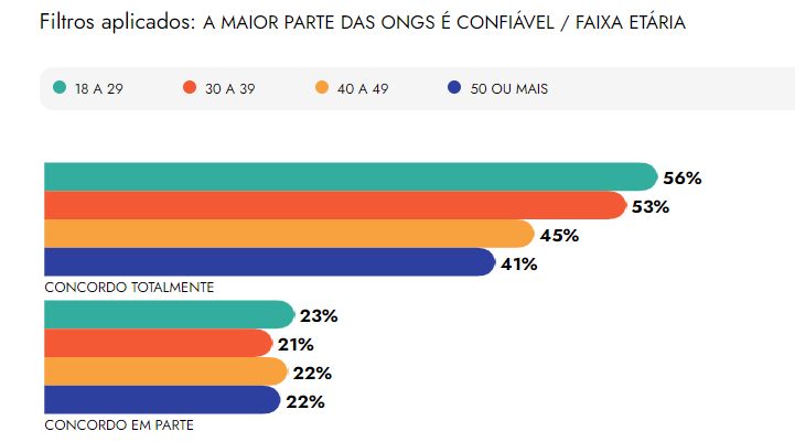 Abaixo o cruzamento dos dados sobre a opinião sobre ONGs e faixa etária do público entrevistado.
